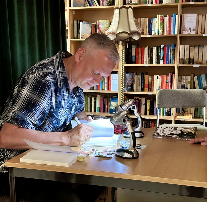 Am Donnerstag, den 25. Mai 2023 fand in der Michendorfer Bibliothek in der Potsdamer Straße meine erste Buchlesung überhaupt statt. Um 19 Uhr waren etwa 20 interessierte Buchfreunde anwesend und erfuhren zunächst einiges über mich und die Entstehungsgeschichte des Buches, bevor ich einige Kapitel vorlas und im Anschluss eine Fragerunde startete. Es entwickelte sich ein lockeres Gespräch und bei der anschließenden Signierstunde wechselte das ein und andere Buch seinen Besitzer. Die Aufregung vor dem Beginn war groß, aber die Nervosität wechselte, nicht zuletzt wegen der begeisterten Zuhörer, schnell zur Zufriedenheit und einem: "Das machst du wieder!"